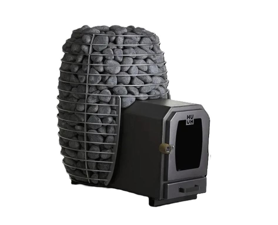 Kamna na dřevo HUUM Hive Wood - nerez a litina, výkon 13 kW. Efektivní vytápění sauny, regulovatelný přívod vzduchu. Moderní