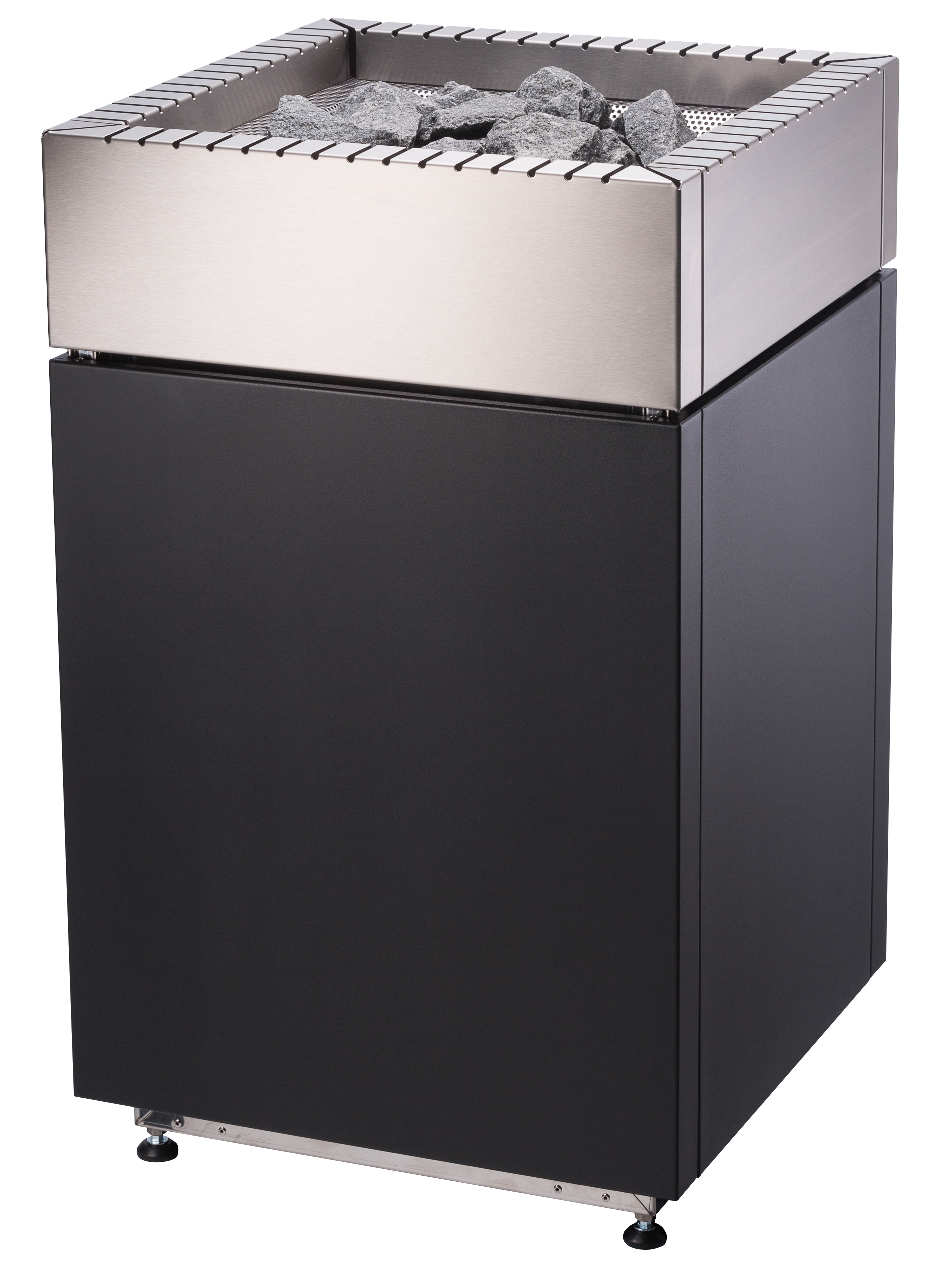 Stylový exteriér Qube je opatřen trojitým povlakem, díky kterému zůstává vnější teplota saunového topidla nízká,